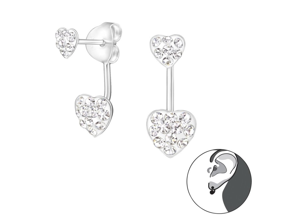 Obojstranné strieborné náušnice srdiečko M17884