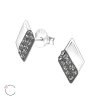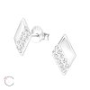 Strieborné náušnice v tvare kosoštvorca veľkosti 9 x 5 mm. Náušnice sú osadené swarovski kryštálmi.