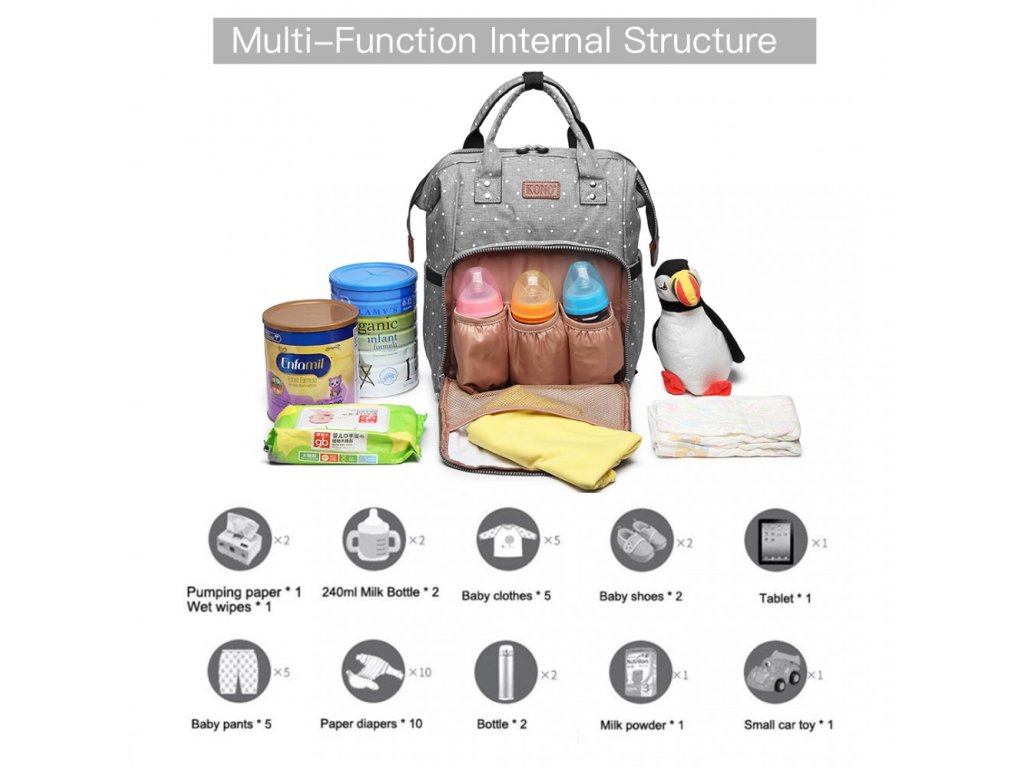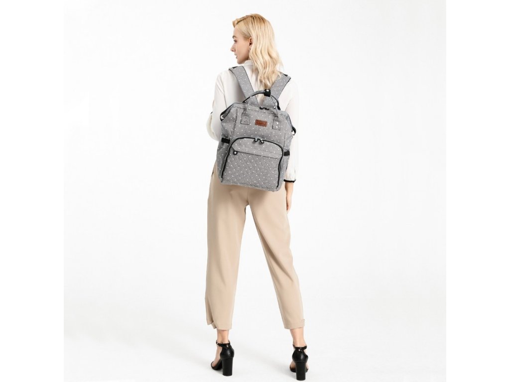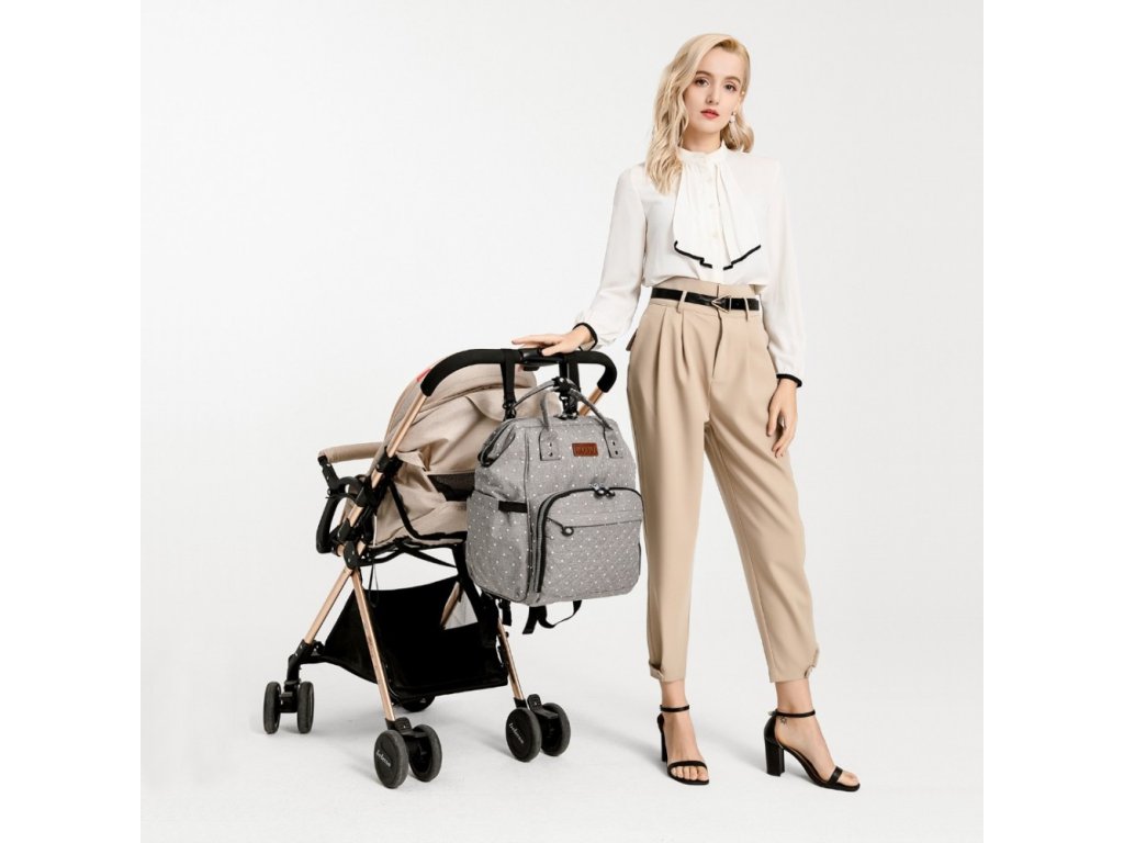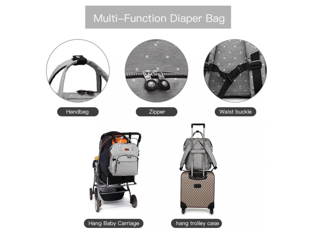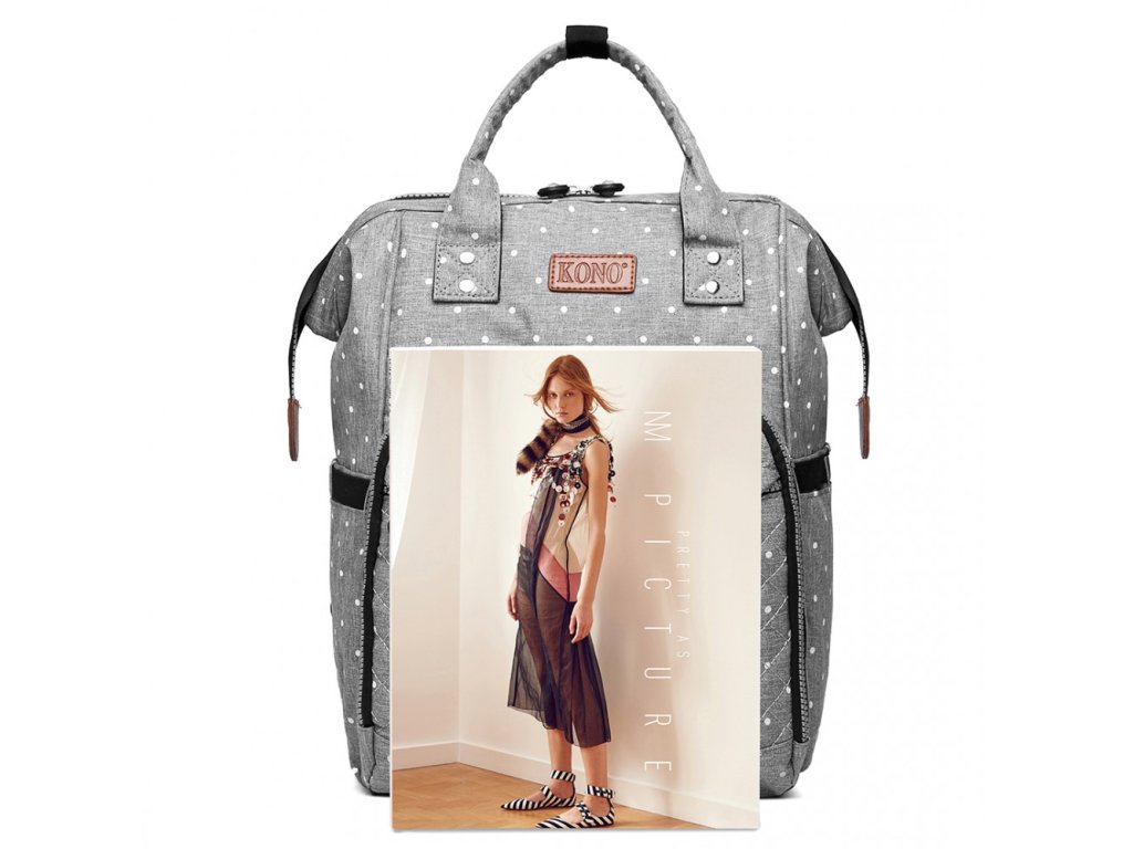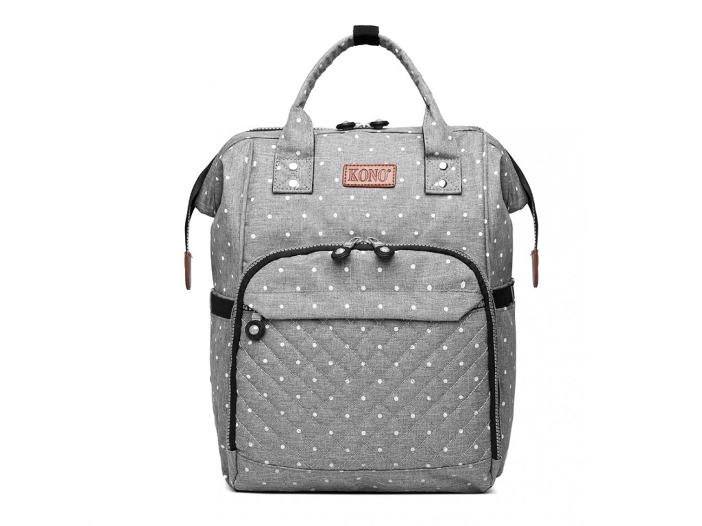 Kono batoh pre mamičky vhodný aj na kočík sivý bodkovaný