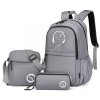 Táto súprava sa skladá z priestranného batohu, praktickej tašky cez rameno a praktického peračníka, všetko je vyrobené z vodo-odpudivého materiálu, aby vaše veci zostali v bezpečí a v suchu. Každý kus v tejto kolekcii má žiarivú modro-zelenú potlač, ktorá v noci fosforeskuje a poskytuje bezpečnosť a jedinečnú estetiku. Dizajn svietiaci v tme dodáva klasickej látke hravý nádych. Všetky vonkajšie zipsy majú navyše zodpovedajúce sťahovacie šnúrky, ktoré ešte viac posilňujú jednotný vzhľad tašiek.