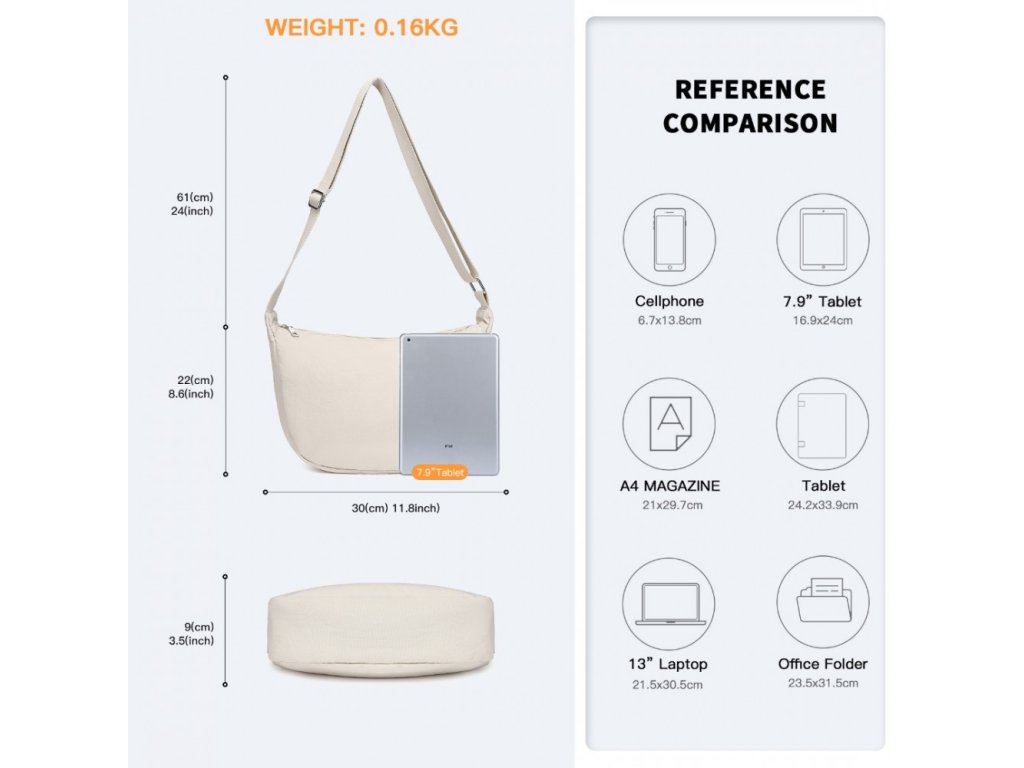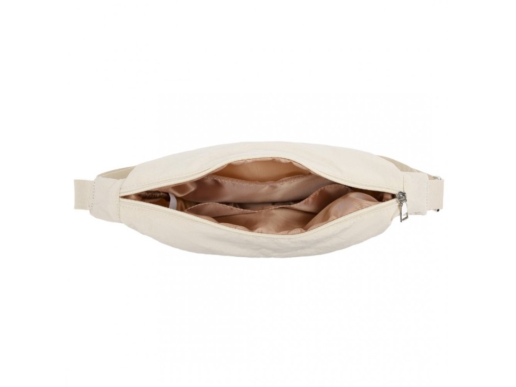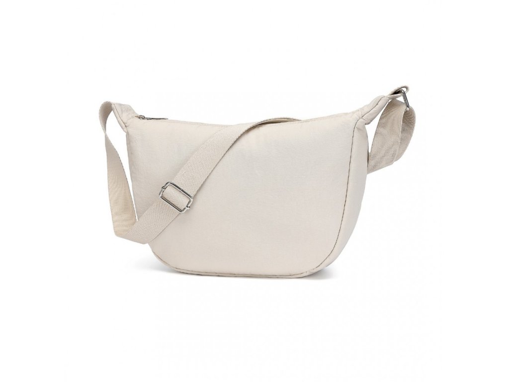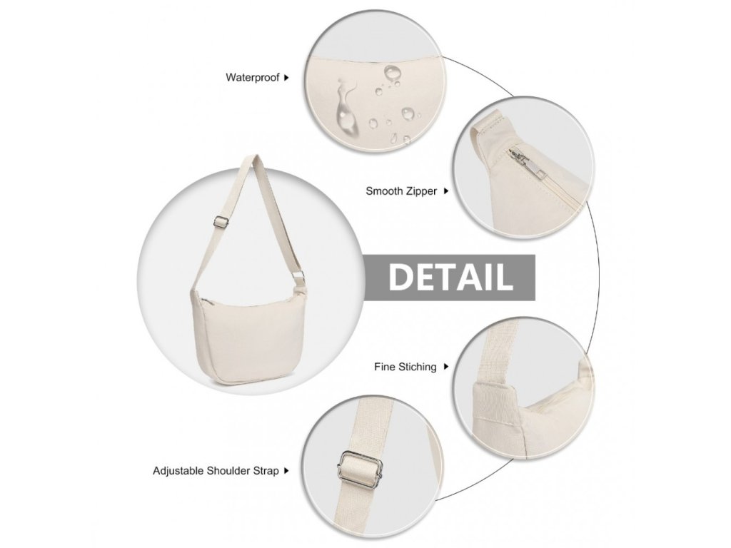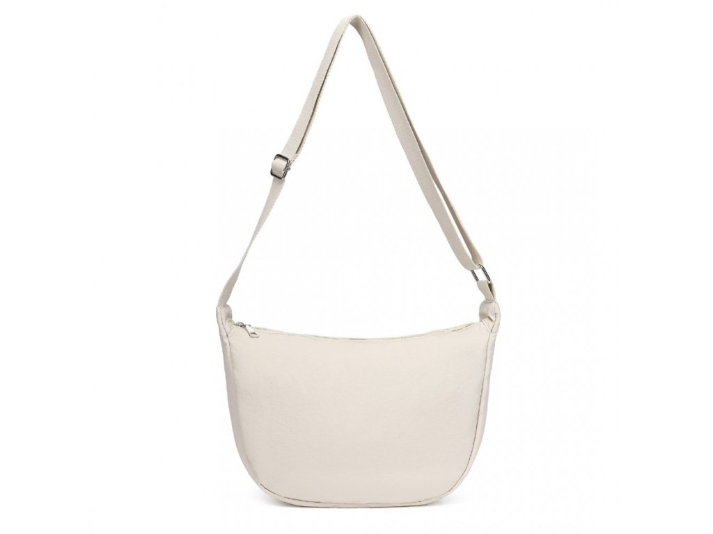 Táto minimalistická béžová crossbody kabelka je vyrobená z odolného, nepremokavého nylonu, je mäkká a ultraľahká, vďaka čomu je ideálna na každodenné nosenie.
