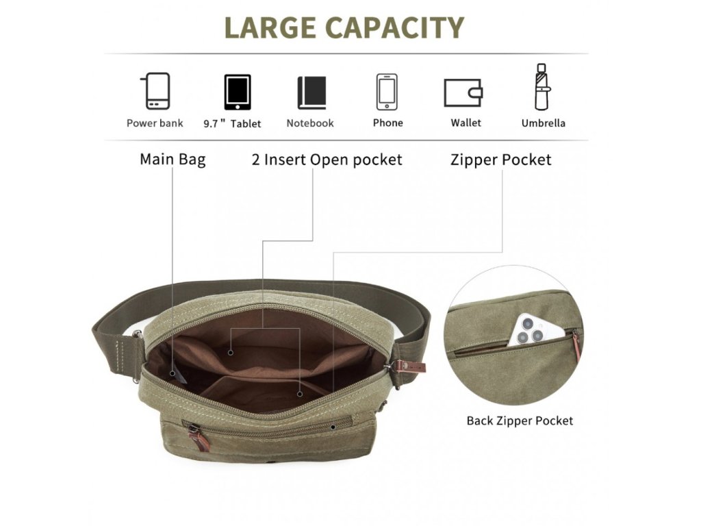 Táto taška, vyrobená z odolného plátna, kombinuje robustnú praktickosť s čistým, moderným dizajnom – ideálna na každodenné použitie, bežné výlety alebo cestovanie.