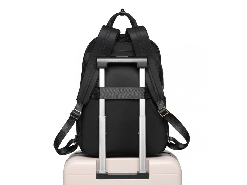 Praktický popruh na zadnej strane umožňujú nasunúť batoh na rukoväť batožiny, čo ešte viac uľahčuje cestovanie.