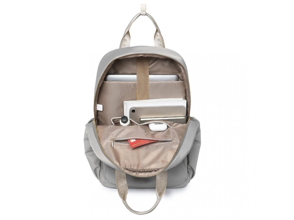 Hlavná priehradka má dvojitý zips pre jednoduchý prístup. Vo vnútri nájdete samostatné vrecko na notebook s uhlopriečkou až 15 palcov, dve otvorené vrecká na nevyhnutnosti, ako sú nabíjačky, a vrecko na zips na osobné veci.