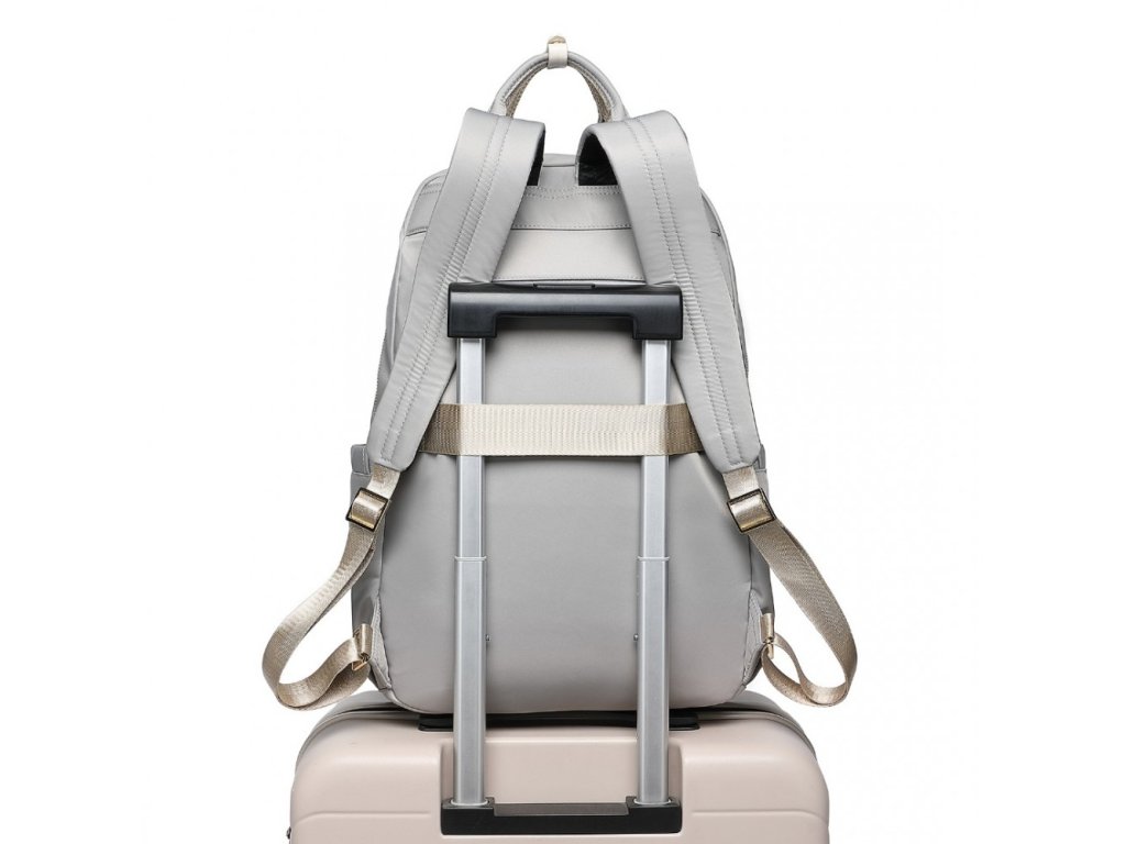 Praktický popruh na zadnej strane umožňujú nasunúť batoh na rukoväť batožiny, čo ešte viac uľahčuje cestovanie.